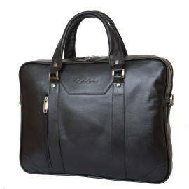 Портфель Corfino (Корфино) выполнен из натуральной кожи темно-коричневого цвета. Портфель состоит из трех основных отделений под клапаном, закрывающимся на цупферные замки. Отделения разделены перегородками с карманами на молнии. Внутри отделений есть отделения для авторучек, кредтиных карт и карман на молнии. Также под клапаном открытый карман.